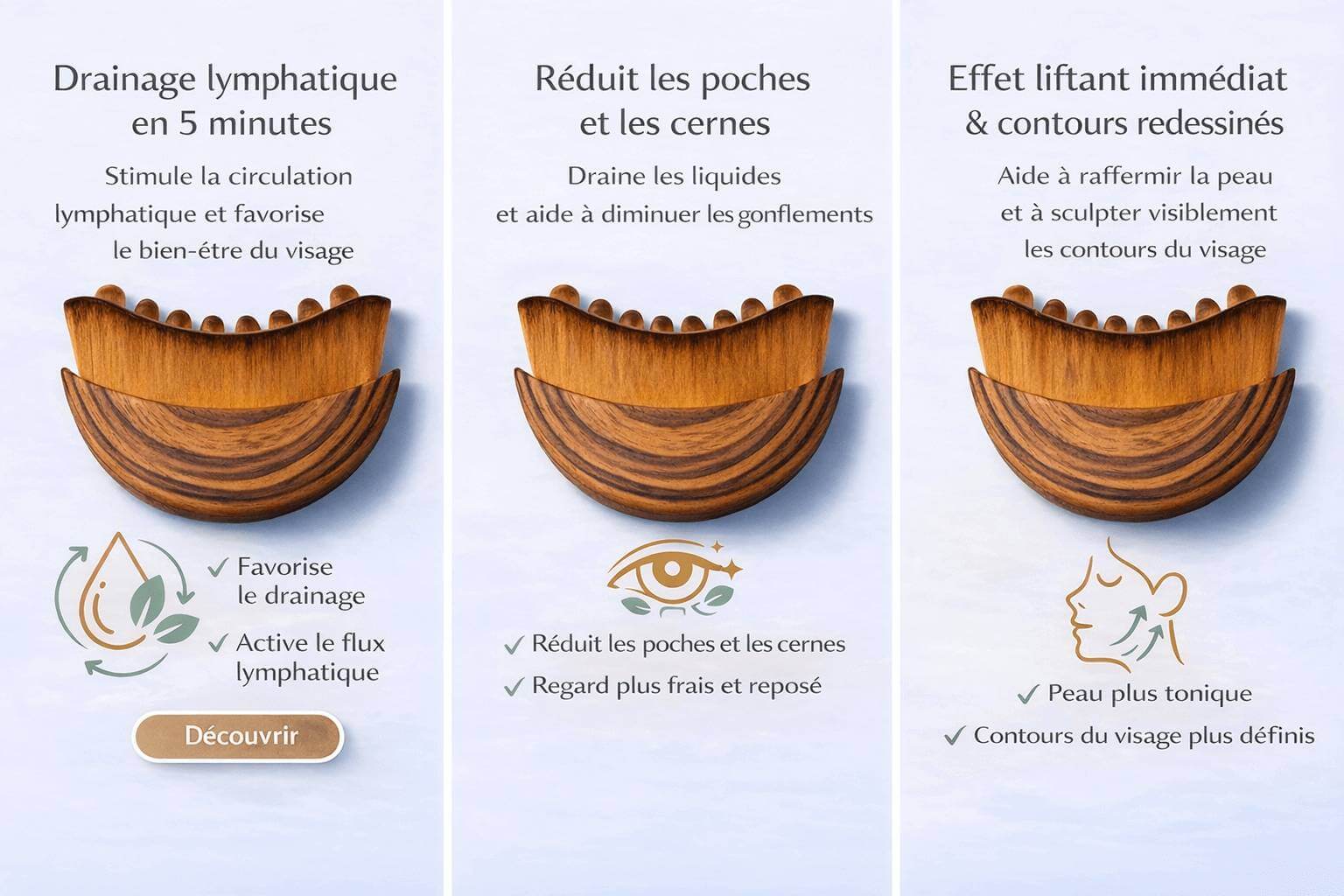 L’utilisation est volontairement simple et intuitive, bien plus facile qu’un gua sha ou un roller.