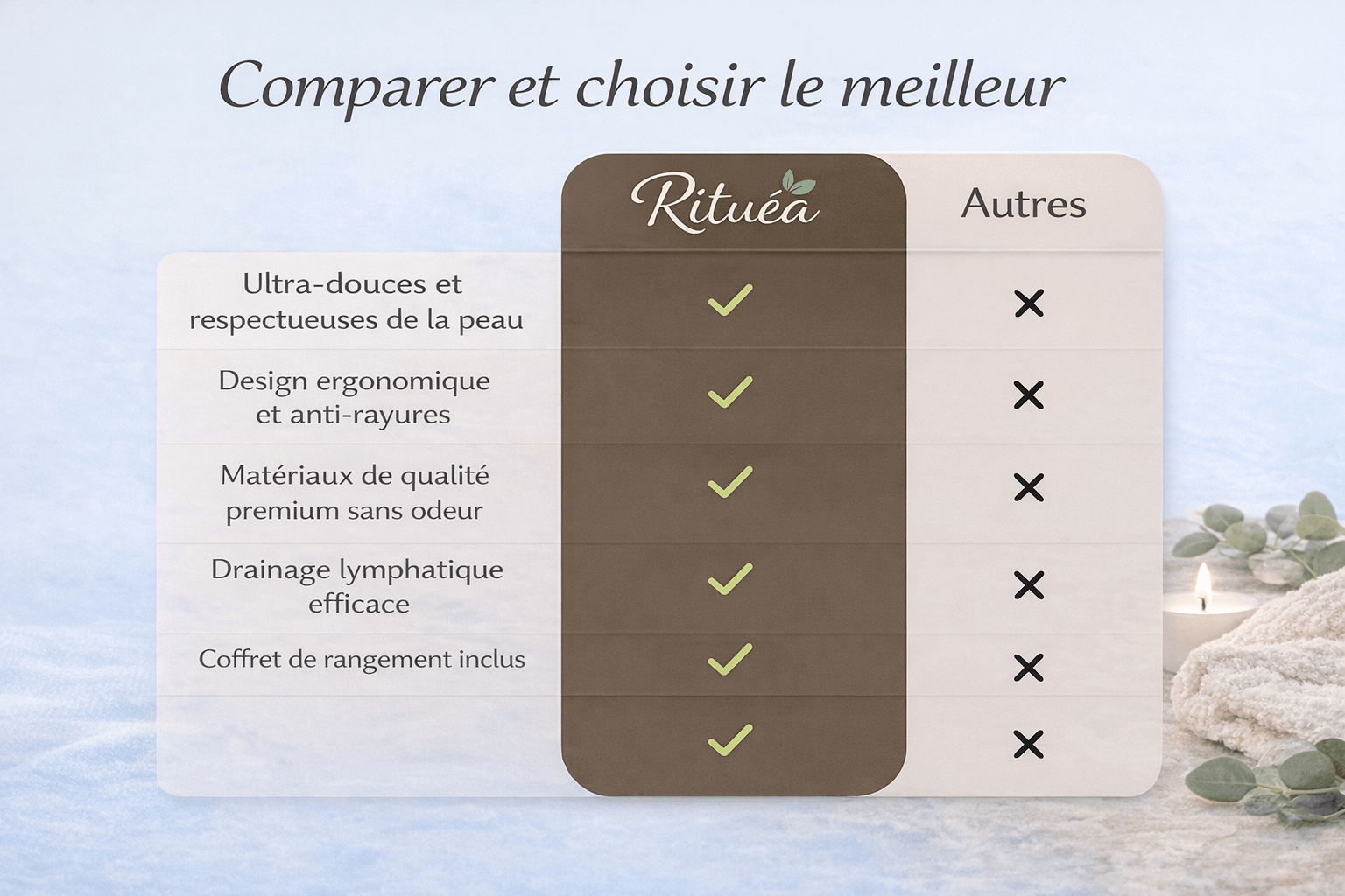 En résumé : là où le gua sha et le roller demandent du temps et de la précision, Rituea offre un drainage efficace, simple et sécurisé, même pour les débutantes.