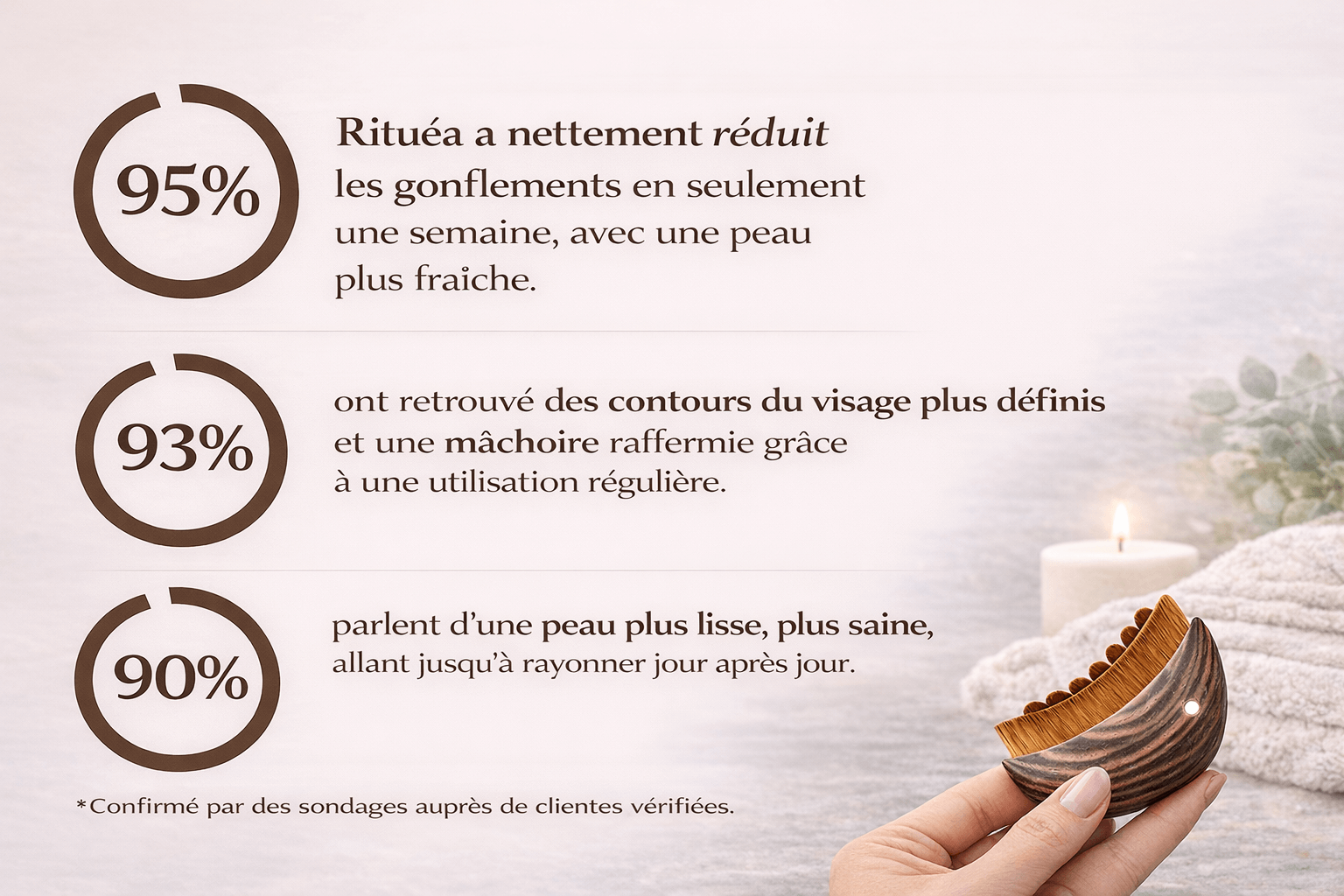 « Rituéa est beaucoup plus confortable à utiliser. Je peux masser mon visage sans rougeurs et j’ai vu une vraie amélioration sur les poches et la sensation de gonflement. Je ne reviendrai pas en arrière. »