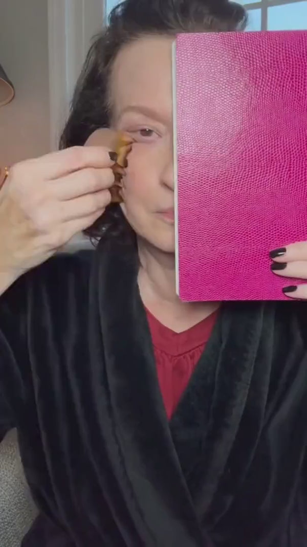 - Insistez légèrement sur les zones sujettes aux gonflements (contour des yeux, joues, bajoues)